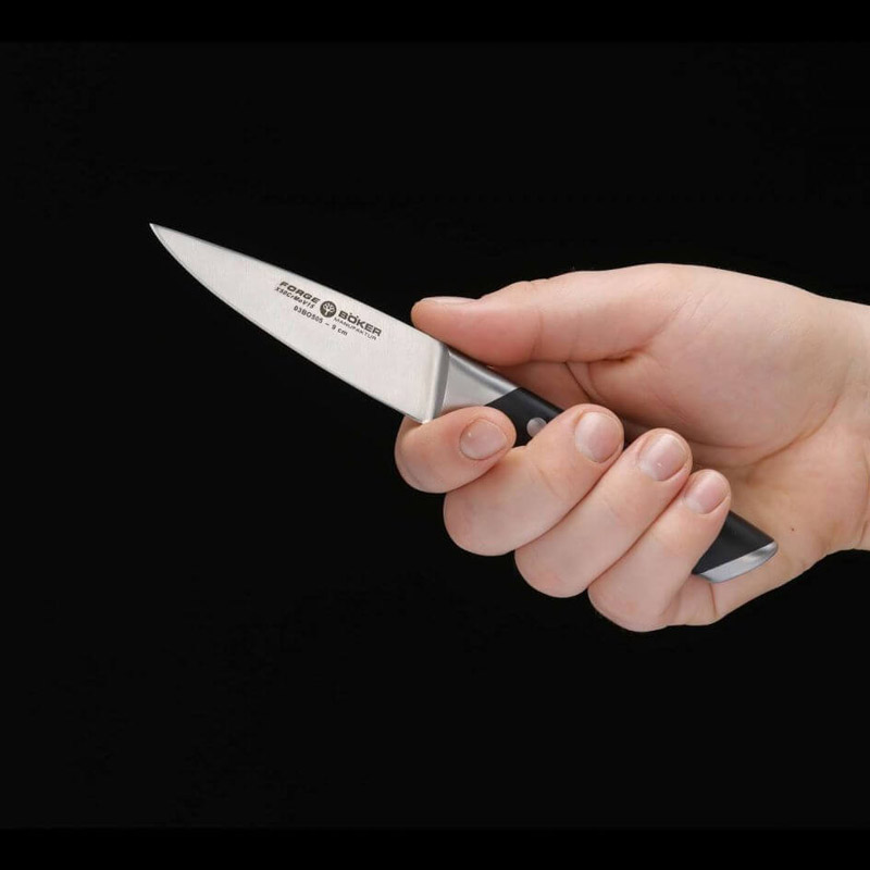 The Paring Knife is particularly handy and has a short blade. All smaller works in the kitchen are carried out with this Knife. The main task, as the name implies, is the paring of fruit and vegetables. It is perfectly suited for cutting along the skin.